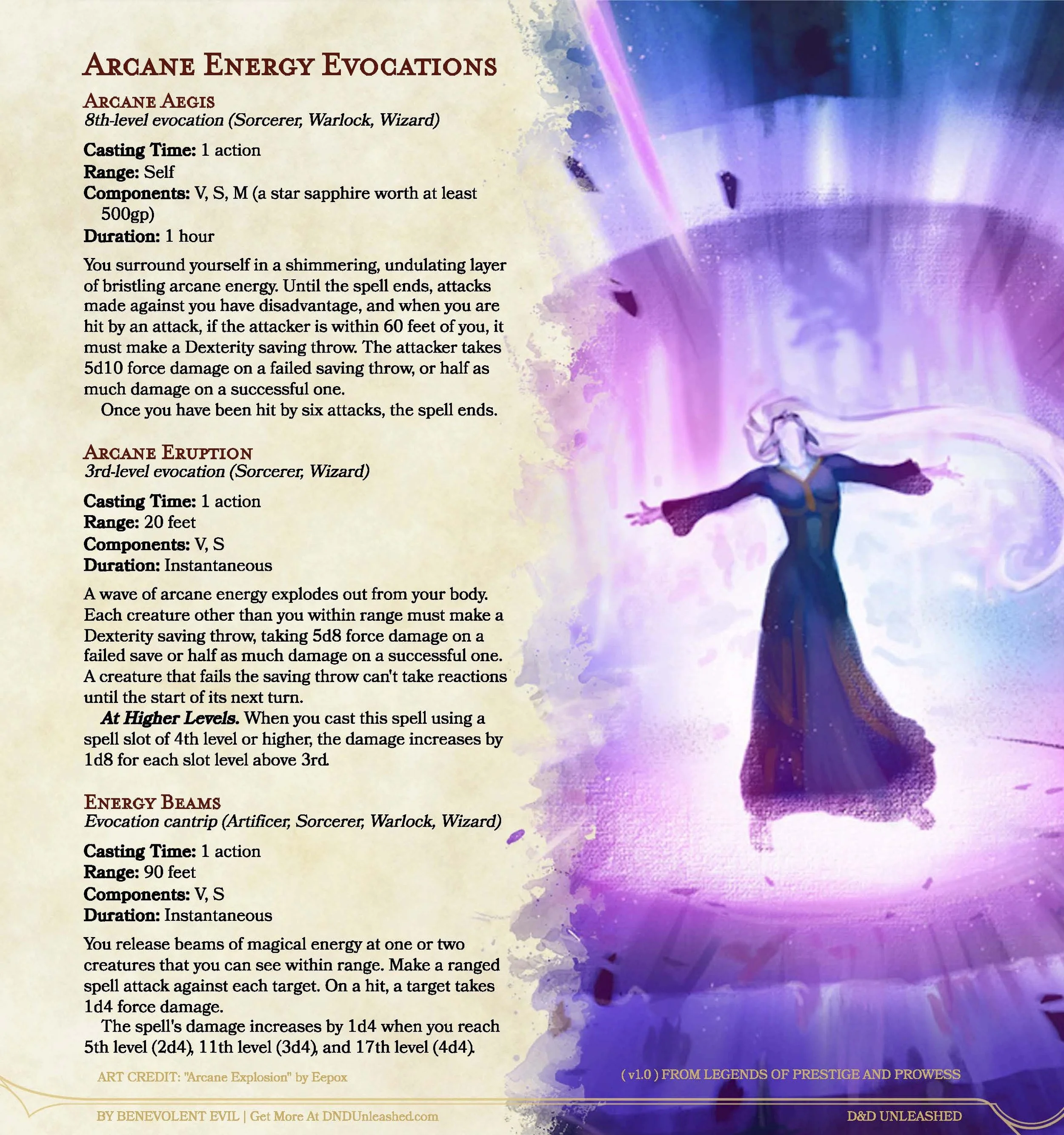 PDF Link | D&D Beyond: Arcane Aegis, Arcane Eruption, Energy Beams
